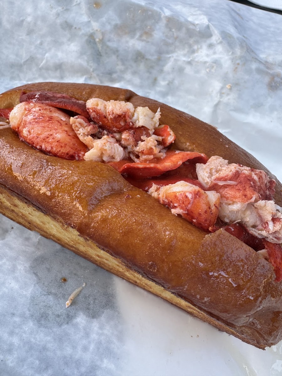 The lobster roll here is fantastic and full of lobster. I got it cold, but it is available hot or cold. The bun is warm on the ‘cold’ style. The watermelon juice is delicious and super refreshing on a hot summer day.